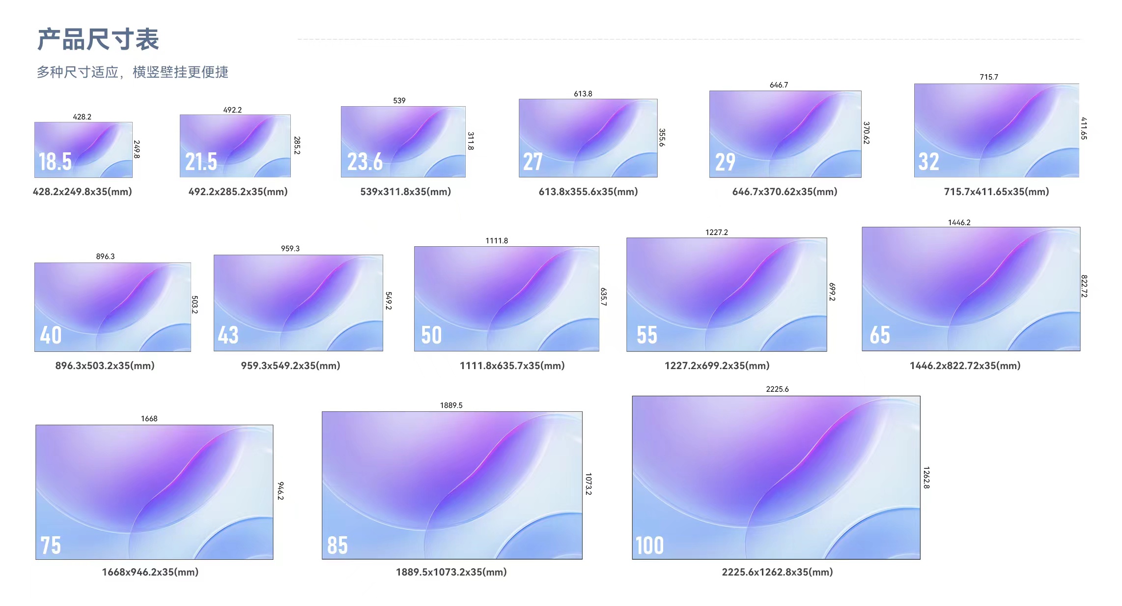 | ขนาดหน้าจอ LCD | 21.5/32 "/43"/50 "/55"/65 "เป็นทางเลือก |